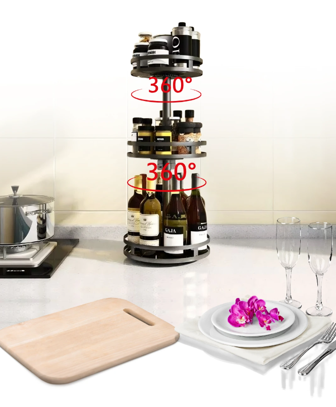 هذه الرفوف المميزة ذات خاصية الدوران ب 360 درجة تضيف جمالية وأناقة لمطبخك. انها تمكنك من إستغلال المساحة والتخلص من الفوضى في المطبخ.